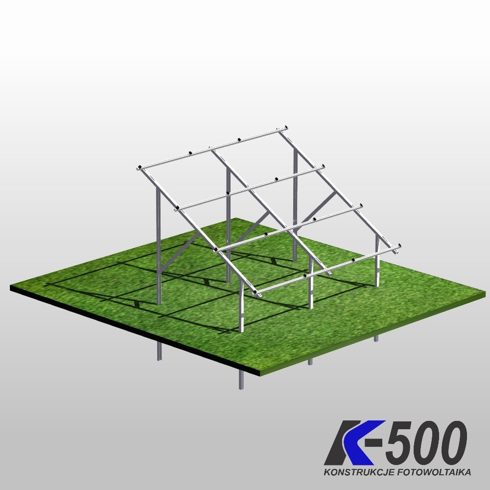 Innowacyjny system montażowy firmy K500 MAX to solidna i stabilna konstrukcja stalowa pod moduły fotowoltaiczne o wymiarach do 2020mm x 1152mm . Dzięki zastosowaniu oryginalnej matrycy bijącej K500 z szybkozłączem SDS-HEX jest możliwość wbicia konstrukcji w grunt za pomocą młota udarowego o mocy od 29 do 56 Juli siły uderzenia. Cała konstrukcja wykonana ze stali S350 z powłoką antykorozyjną MAGNELIS ZM 430 oraz aluminium co sprawia że trwałość systemu wydłuża się nawet powyżej 30 Lat.