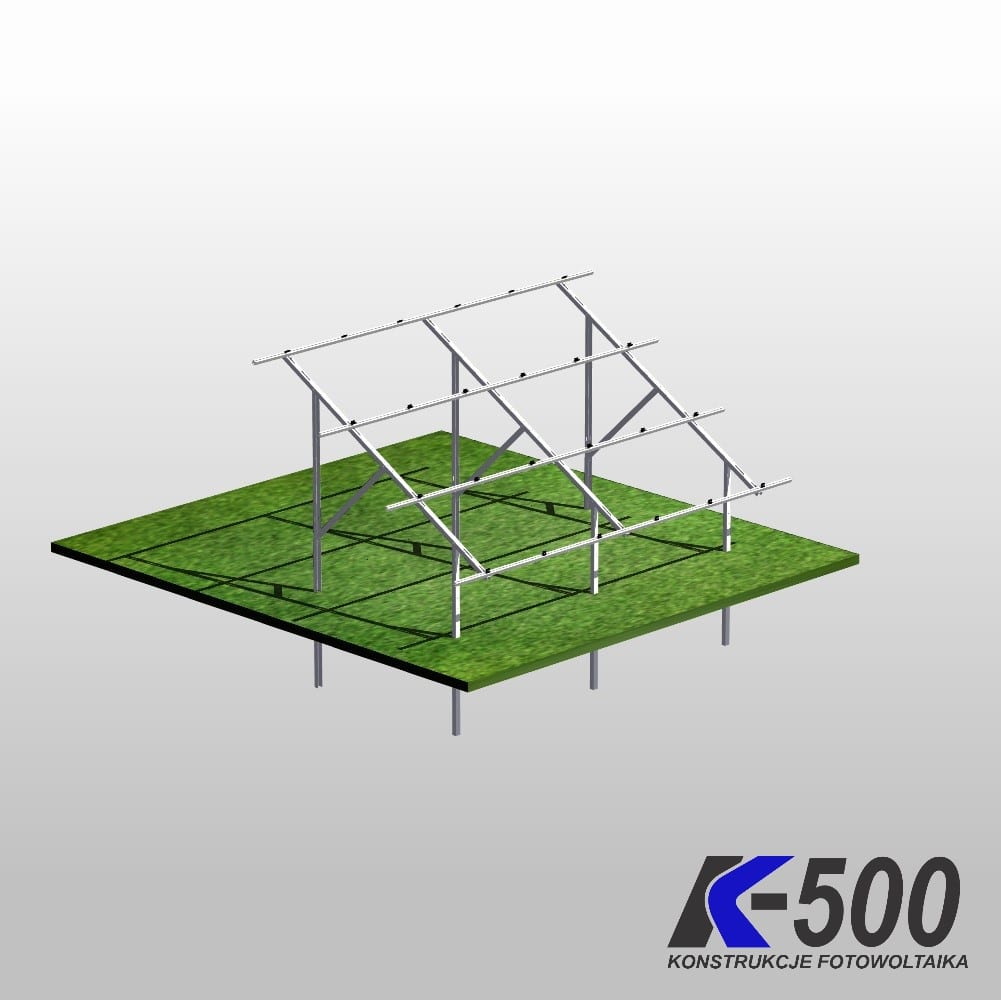 Innowacyjny system montażowy firmy K500 to solidna i stabilna konstrukcja stalowa pod moduły fotowoltaiczne. Dzięki zastosowaniu oryginalnej matrycy bijącej K500 z szybkozłączem SDS-HEX jest możliwość wbicia konstrukcji w grunt za pomocą młota udarowego o mocy od 29 do 56 Juli siły uderzenia. Cała konstrukcja wykonana ze stali S350 z powłoką antykorozyjną MAGNELIS ZM 430 oraz aluminium co sprawia że trwałość systemu wydłuża się nawet powyżej 30 Lat.