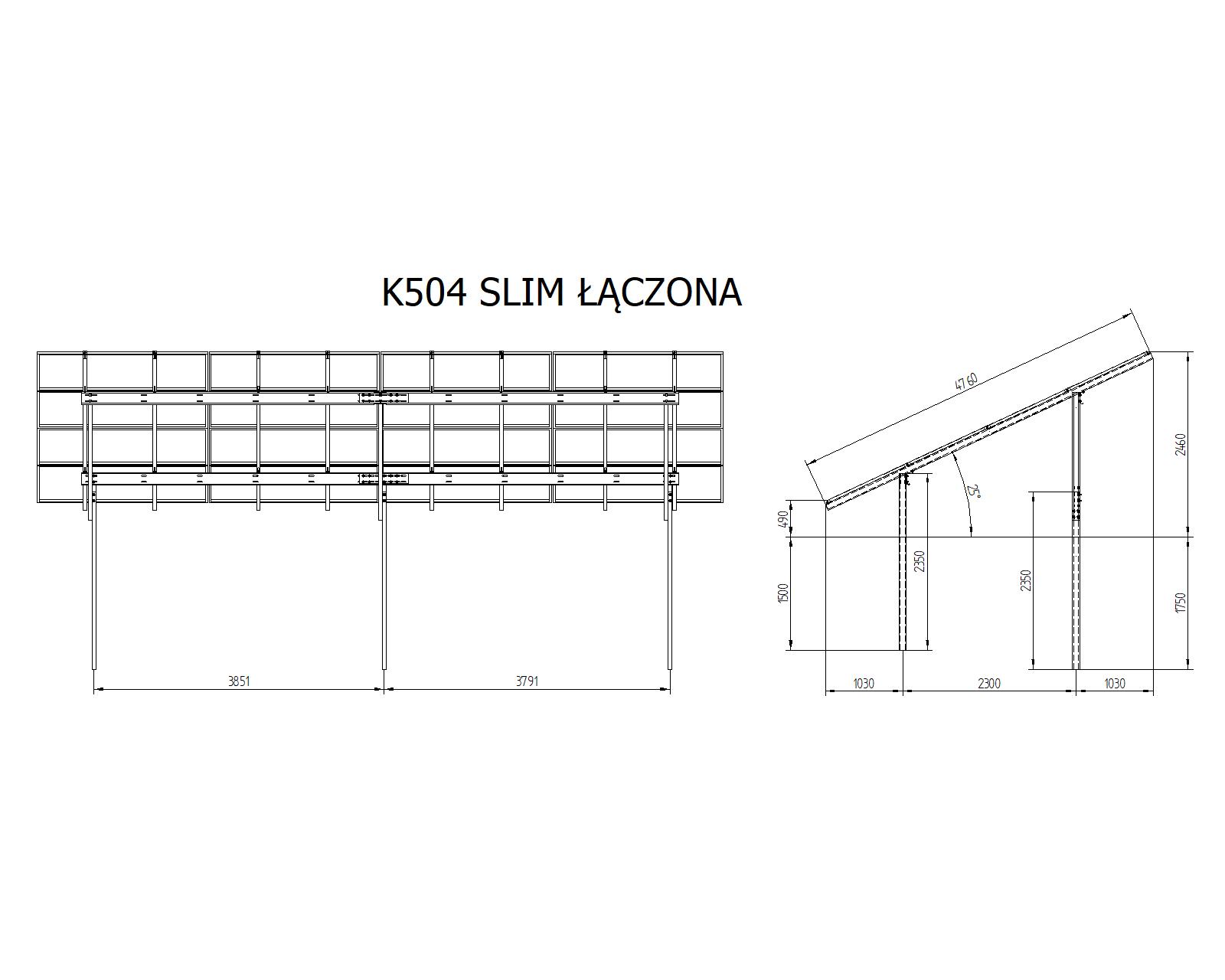 K504 SLIM ŁĄCZONA jest konstrukcją zaprojektowaną z myślą o wielkopowierzchniowych elektrowniach słonecznych, dzięki jej modułowości możliwe jest dokładanie elementów w zależności od terenu.
